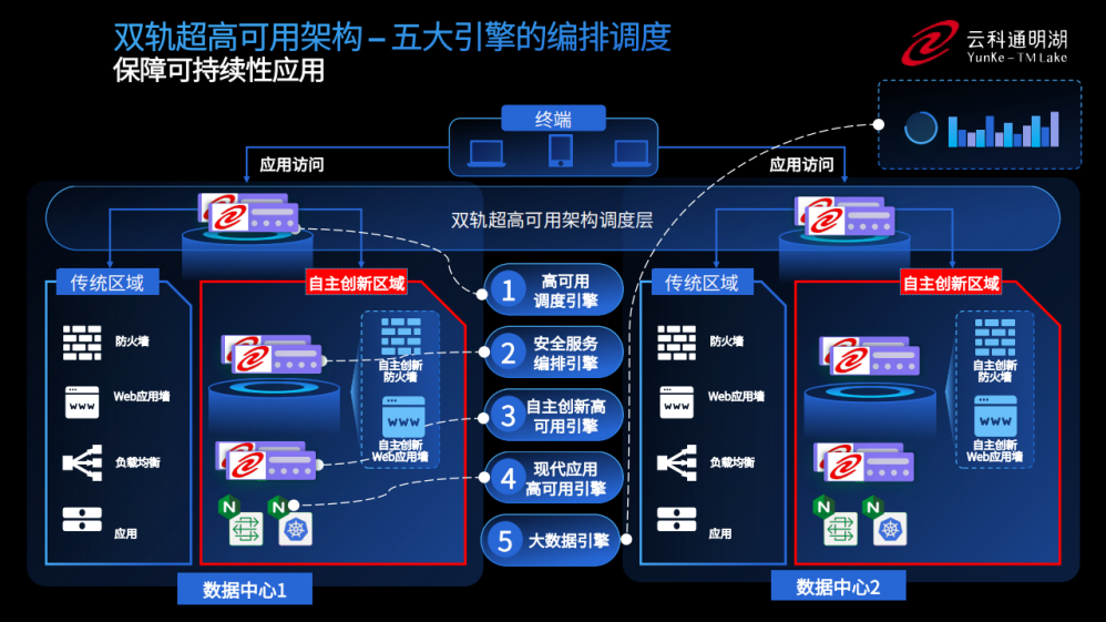 雙軌超高可用架構(gòu)在雙活數(shù)據(jù)中心的分區(qū)調(diào)度基礎(chǔ)上,增加信創(chuàng)域和非信創(chuàng)域的分域調(diào)度,實行信創(chuàng)域與傳統(tǒng)域應(yīng)用全量部署,使雙中心運營變?yōu)殡p中心四區(qū)域并行運行,互為多活,將傳統(tǒng)架構(gòu)變?yōu)榉謪^(qū)分域協(xié)同的多活雙軌超高可用架構(gòu)。幫助客戶在新架構(gòu)下,保障“信創(chuàng)”的同時解決性能瓶頸,提升穩(wěn)定性,保證應(yīng)用可持續(xù)性,最終實現(xiàn)信創(chuàng)區(qū)域和非信創(chuàng)區(qū)域的平滑過渡,完成國產(chǎn)化替代目標(biāo)。