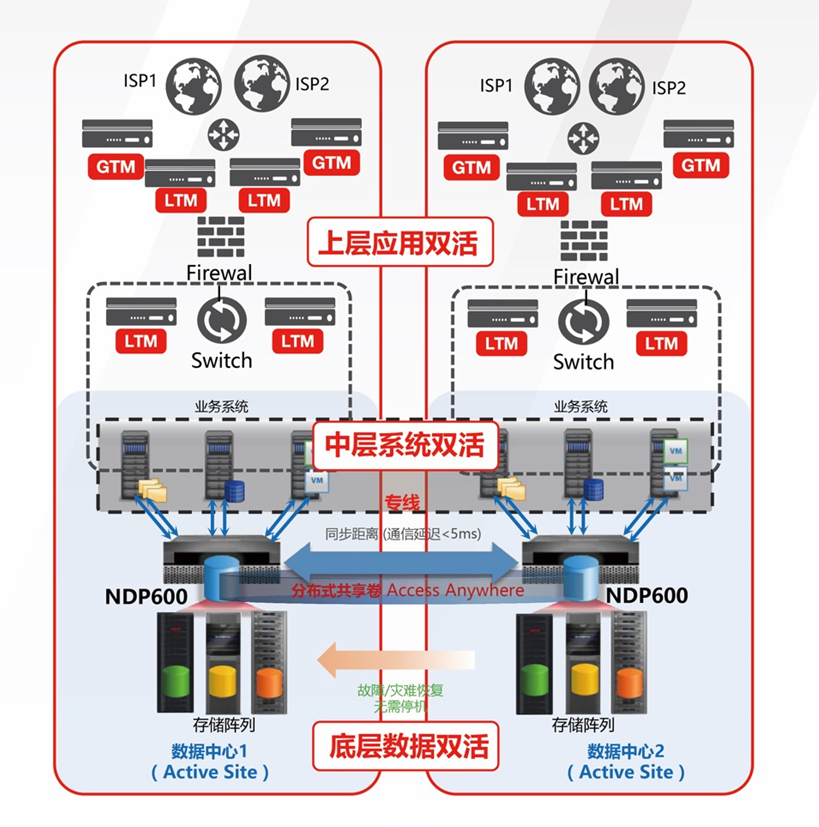 通過NDP600集中存儲的雙活架構,實現底層數據的兩端一致性
