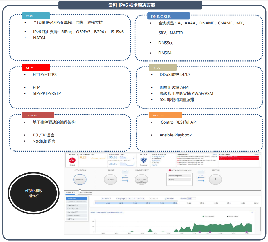 全球范圍內(nèi)支持無線和互聯(lián)網(wǎng)的設(shè)備日益增多,導(dǎo)致 IPv4 地址快速耗盡。與此同時,IPv6 的普及速度比預(yù)計的要慢。服務(wù)提供商需要一款解決方案,幫助他們應(yīng)對 IPv4 地址耗盡的問題,并基于無縫遷移到 IPv6 以實現(xiàn)網(wǎng)絡(luò)優(yōu)化。通過提供大量的IP地址轉(zhuǎn)換、快速的NAT 轉(zhuǎn)換率、高吞吐率能力和高速的日志審計功能實現(xiàn)運營商級平臺的可擴展性。